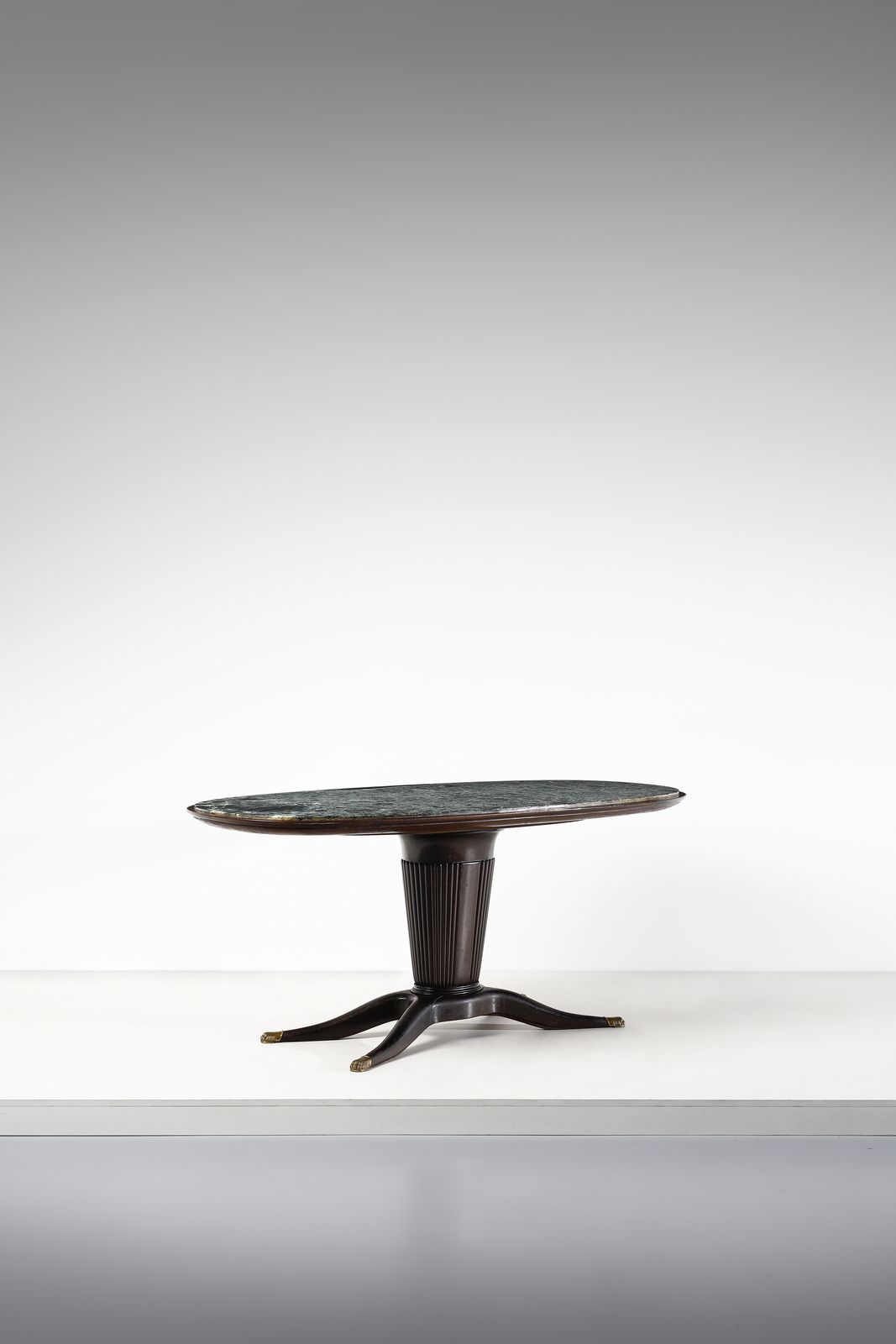 nello stile di. Tavolo con piano ovale, gamba centrale e piedini a zampa di feli [..]