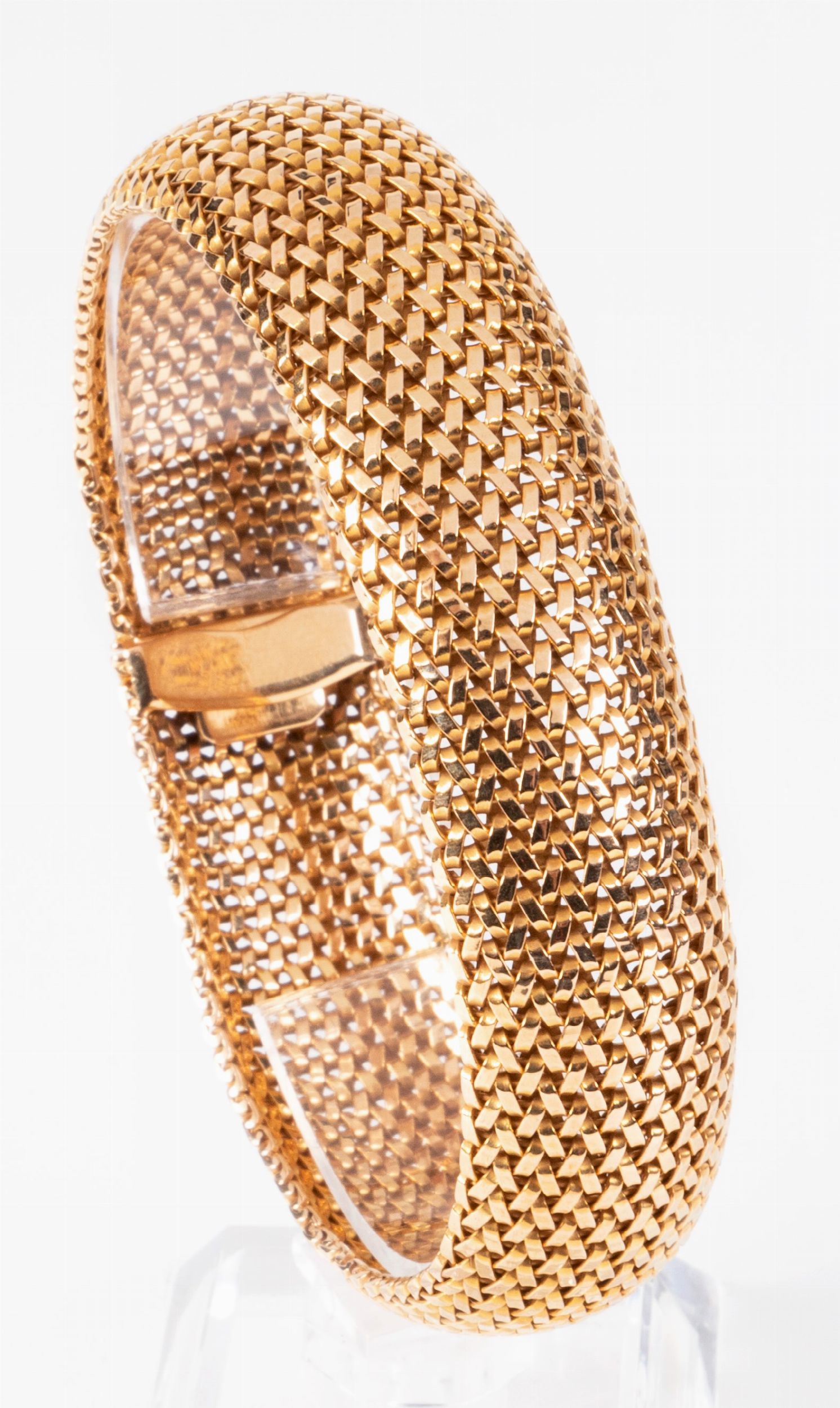 Bracciale a fascia in oro giallo a maglia tipo tessuto