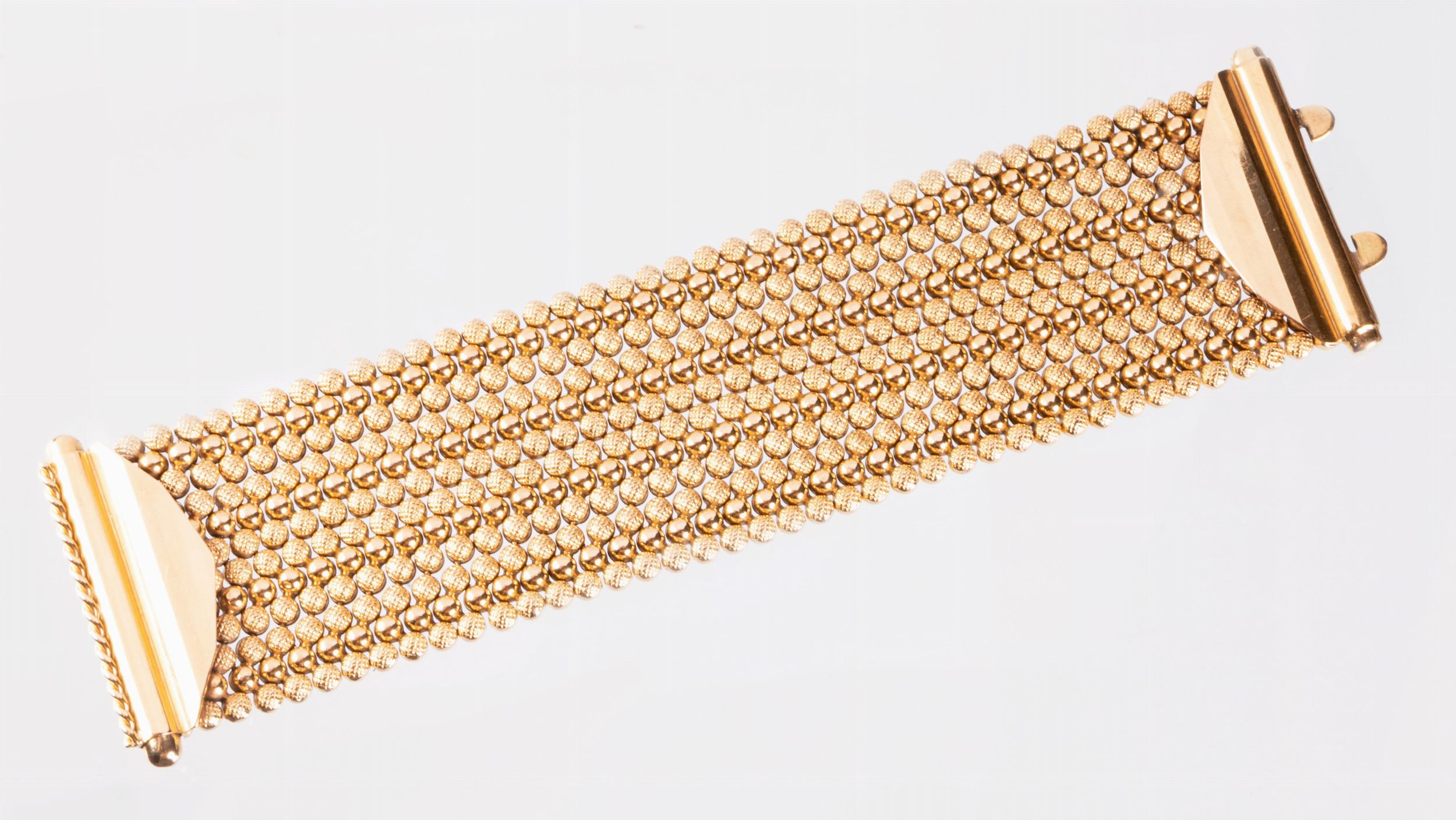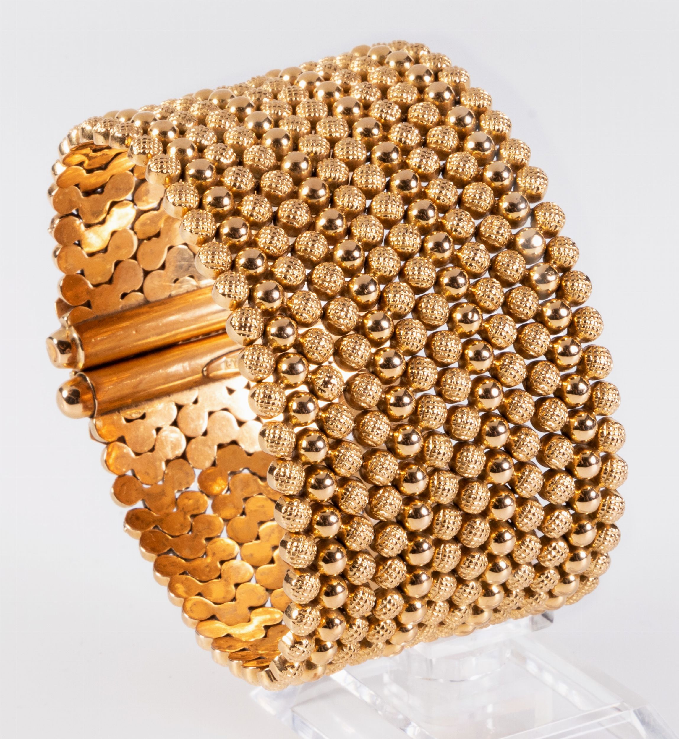 Bracciale a fascia morbida in oro giallo, anni Quaranta-Cinquanta