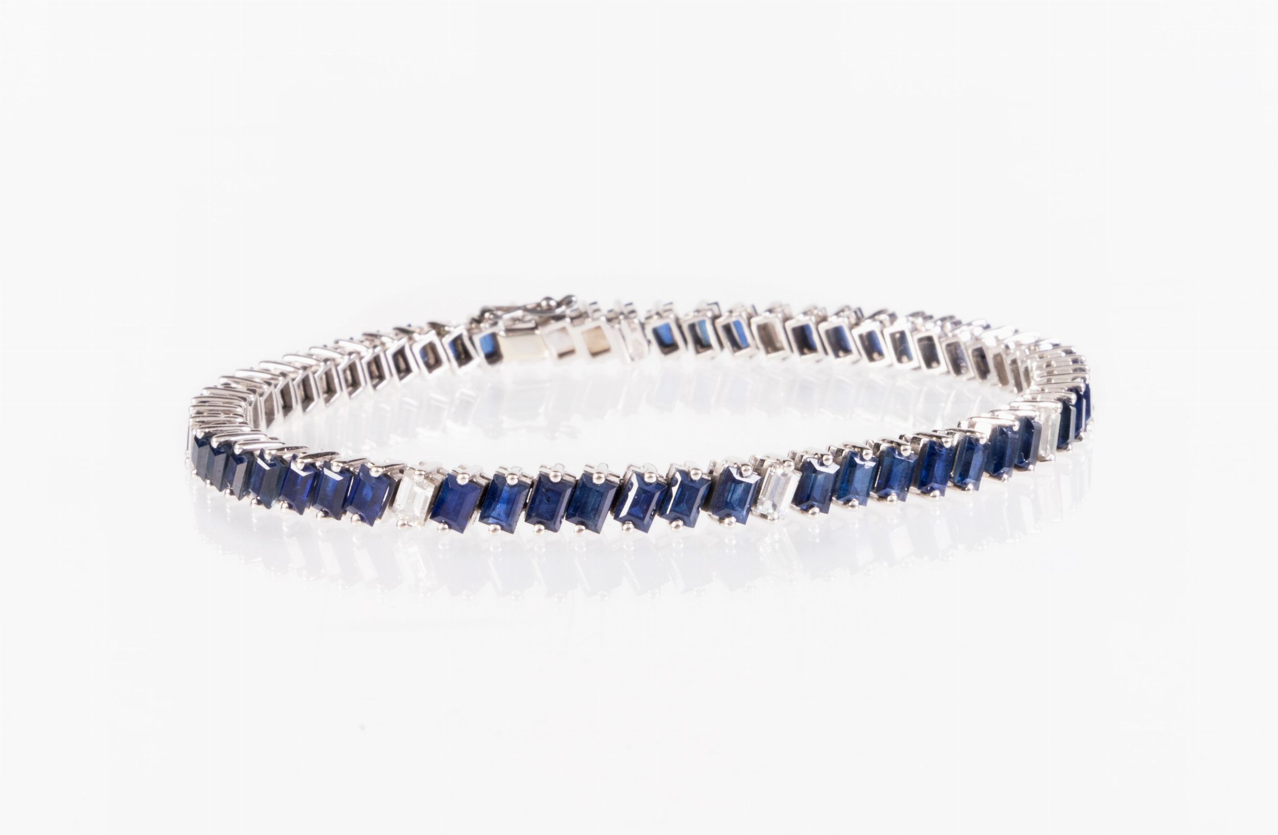 Bracciale tennis in oro bianco con zaffiri e diamanti