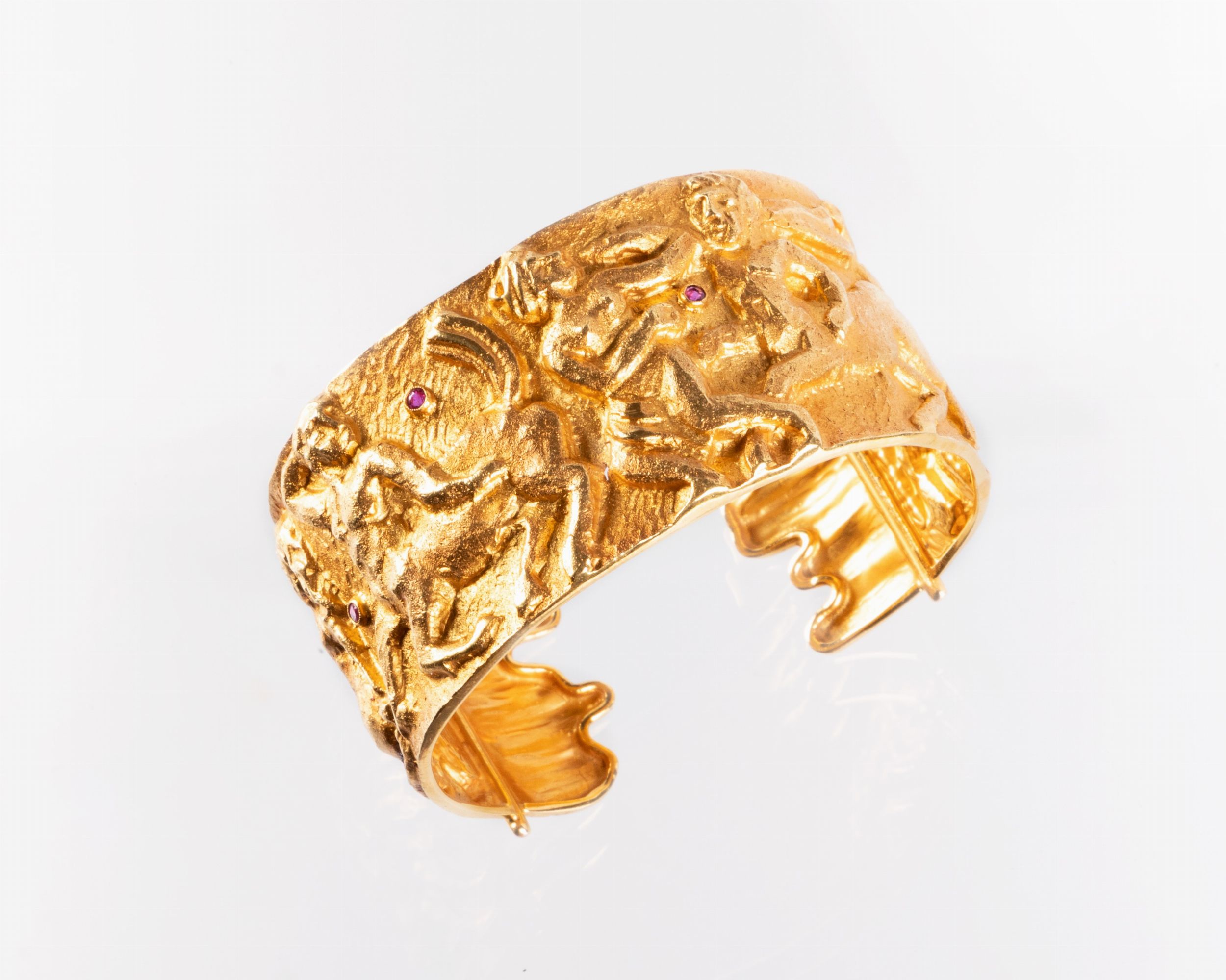 Finzi bracciale a fascia rigida in oro giallo e rubini