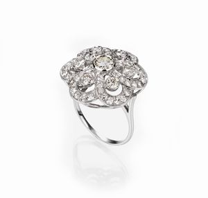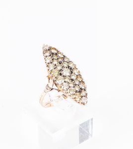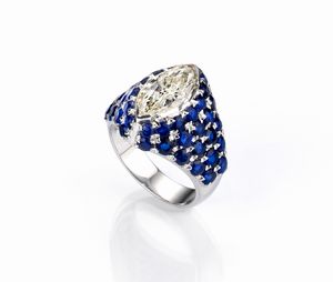 oro 18 kt, rubino ct 3,00 ca., diamanti ct 1,20 ca., misura 16, g 7,5.