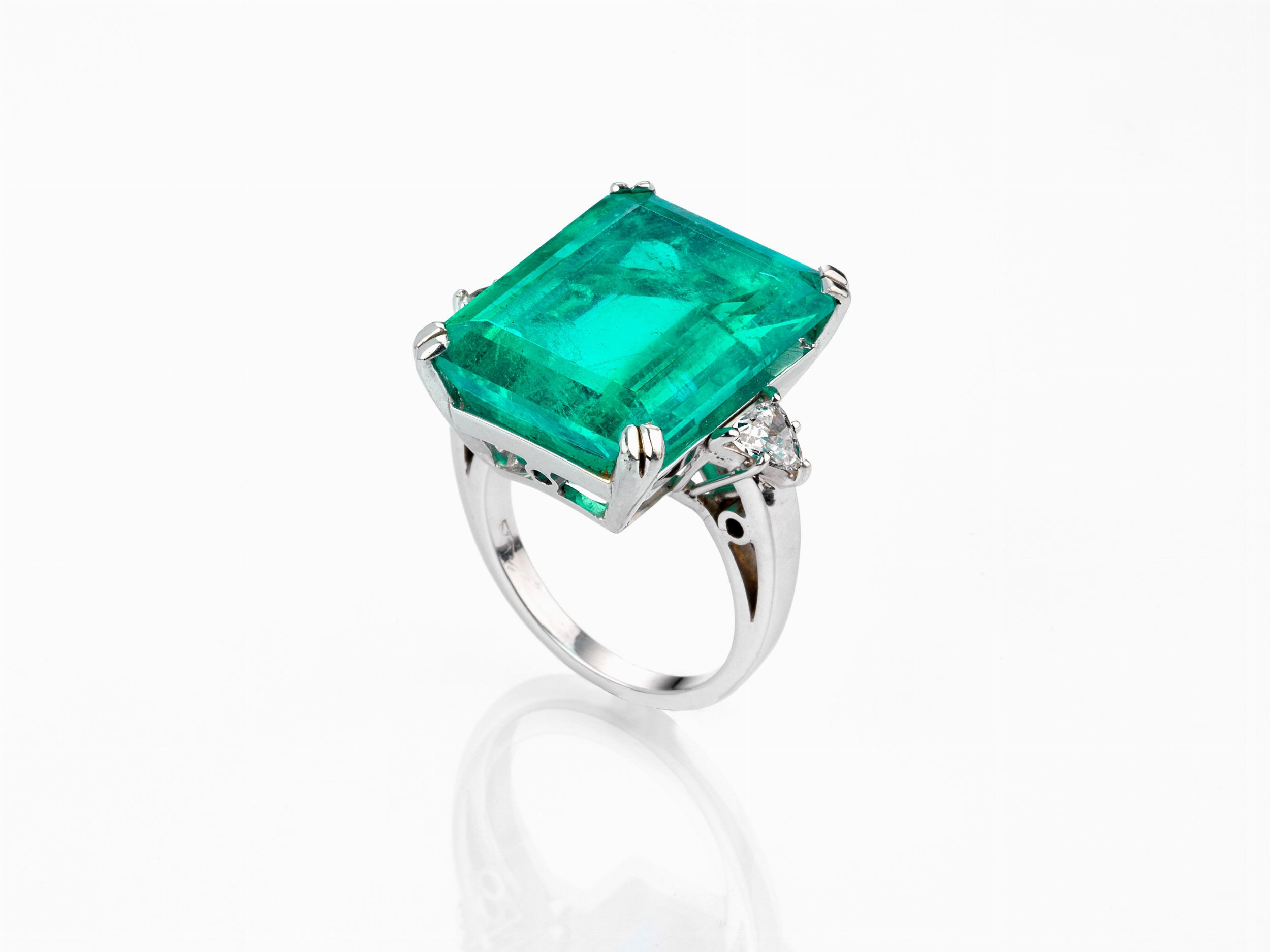 oro 18 kt, smeraldo ct 21,5, diamanti ct 0,80, misura 17,5, g 14.