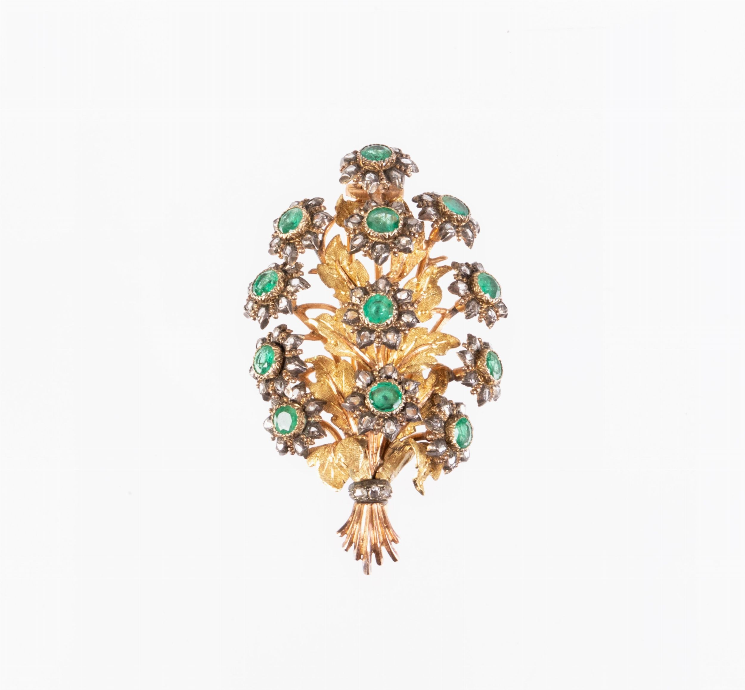 Mario Buccellati spilla a mazzo di fiori in oro giallo satinato con smeraldi e rose [..]