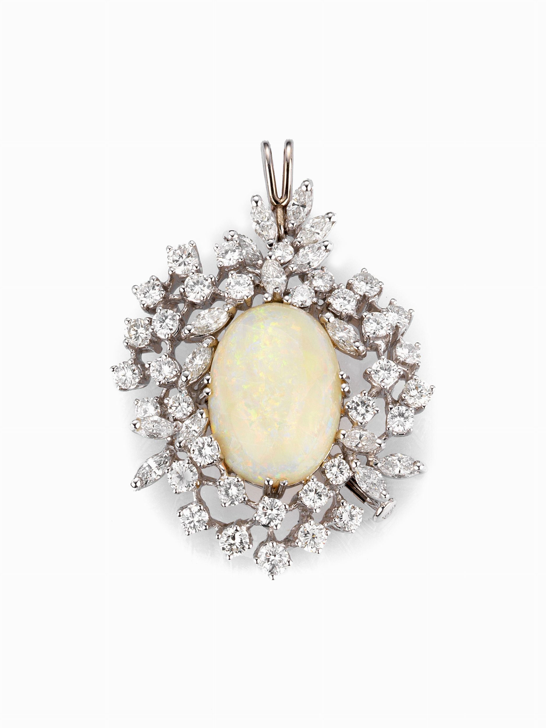 oro 18 kt, opale ct 14 ca., diamanti ct 3,30 ca., g 16.