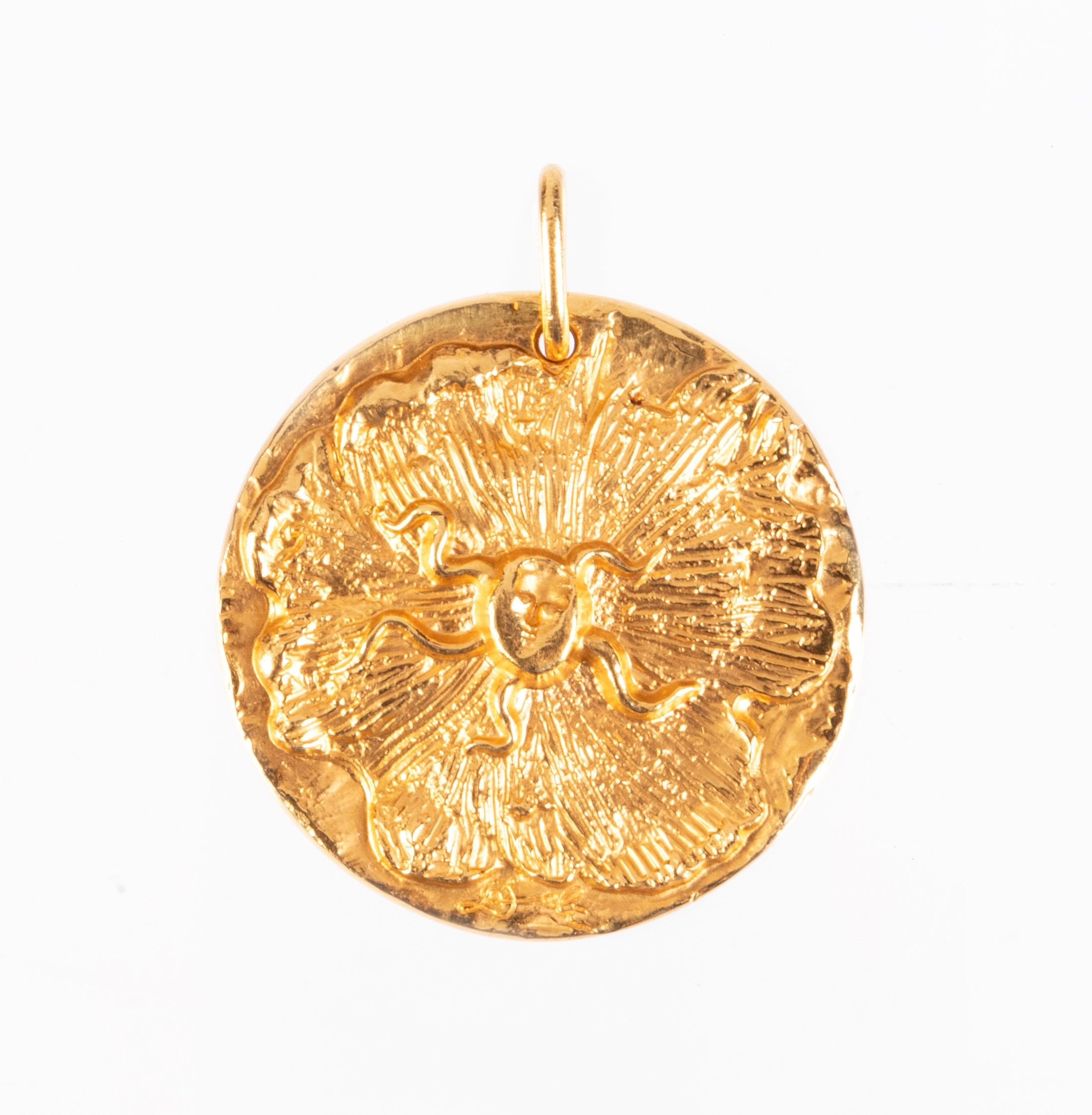 Pendente in oro 22 kt, cm 3,4 ø, g 34,5