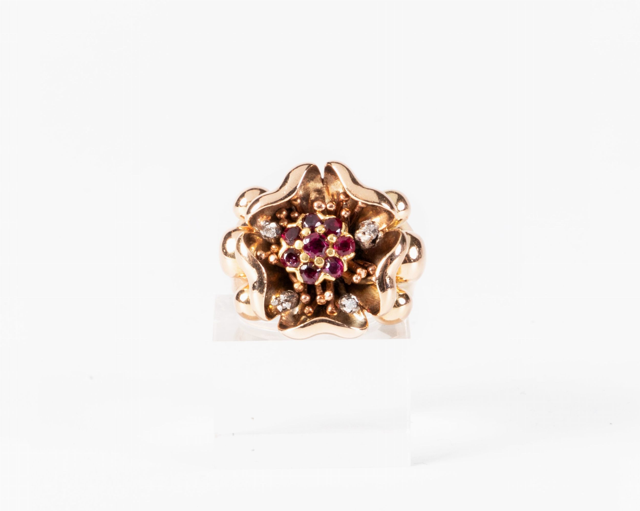 Tiffany anello a fiore in oro giallo con rubini e piccoli diamanti