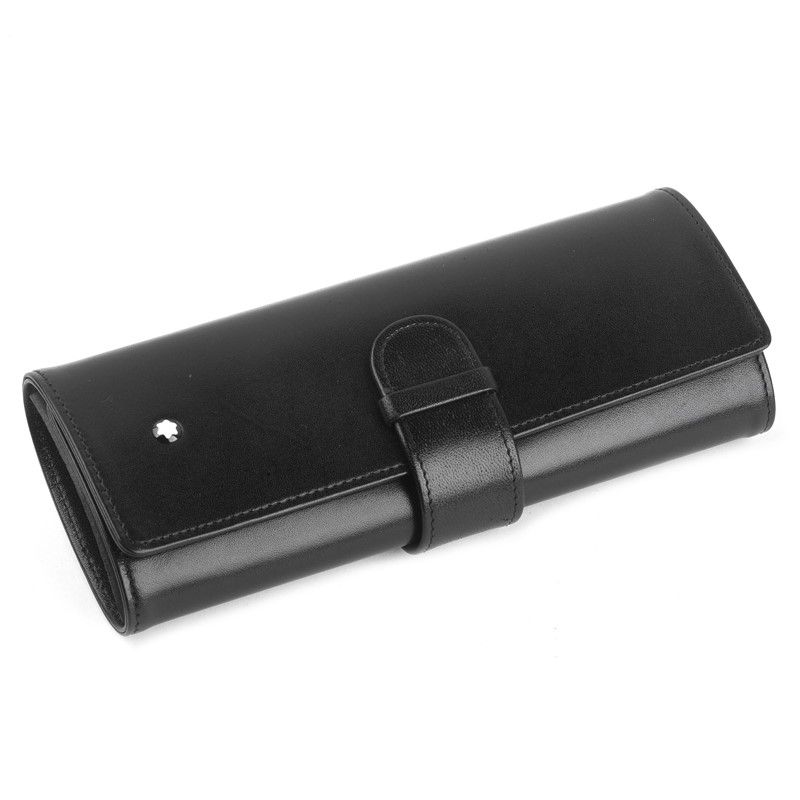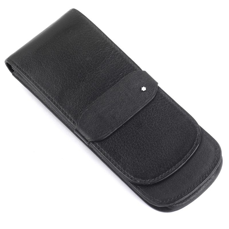 DUE ASTUCCI PORTAPENNE MONTBLANC un astuccio in pelle nera, recante vano interno per penna e cartucce ai lati, linguetta di chiusura e logo Montblanc. Un astuccio portapenne in pelle nera, recante vano per penne, logo Montblanc, dim. mm 14,5x6,5x1,5. Corredato di scatola.