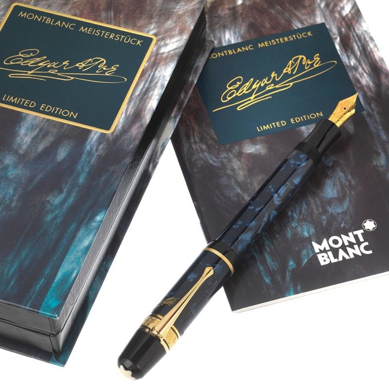 La penna stilografica della serie scrittori realizzata da Montblanc in onore di Edgar Allan Poe, ricalca con i suoi toni scuri e brillanti lo spirito misterioso e affascinante che permea l'opera di Poe. Il pennino in oro 18kt reca l'incisione di un corvo simbolo di una delle più note poesie dell'autore americano.