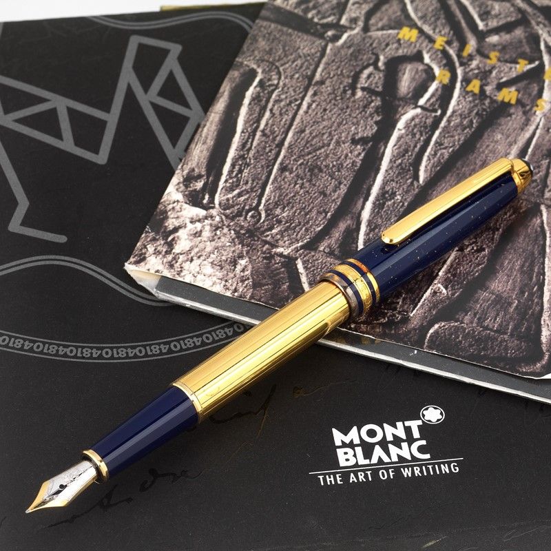 MONTBLANC MEISTERSTUCK RAMSES II PENNA STILOGRAFICA fusto in argento vermeil, punzone 925, cappuccio decorato effetto lapislazzuli, pennino in oro 18kt, caricamento a stantuffo, lungh. cm 15. Corredata di scatola, controscatola e libretti.