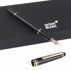 MONTBLANC MEISTERSTÜCK N. 144 PENNA STILOGRAFICA fusto in resina nera, dettagli finitura in metallo dorato, [..]