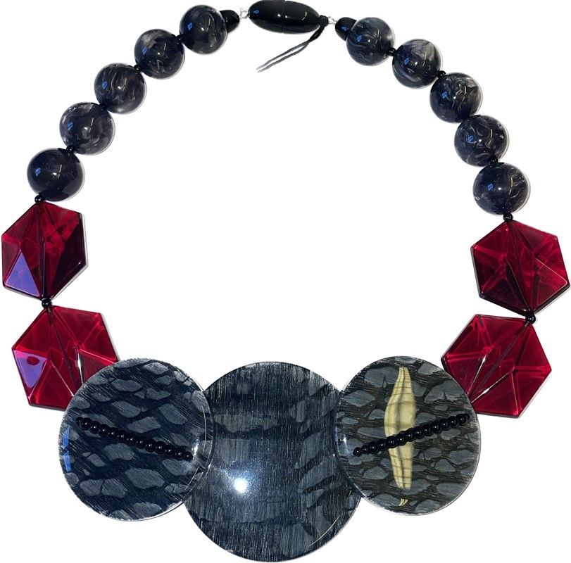 Necklace with 3 large discs and resin clip earrings from the Vigogna line