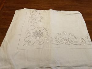 HERMIONE GRASSI 3 lenzuoli in lino con ricami senza federe, di cui due completi di lenzuolo sotto e il terzo [..]