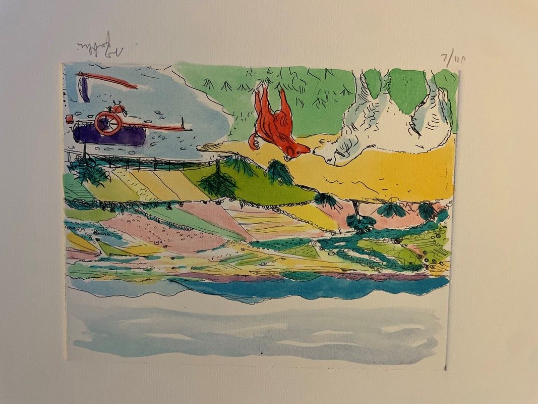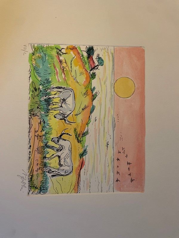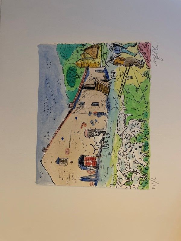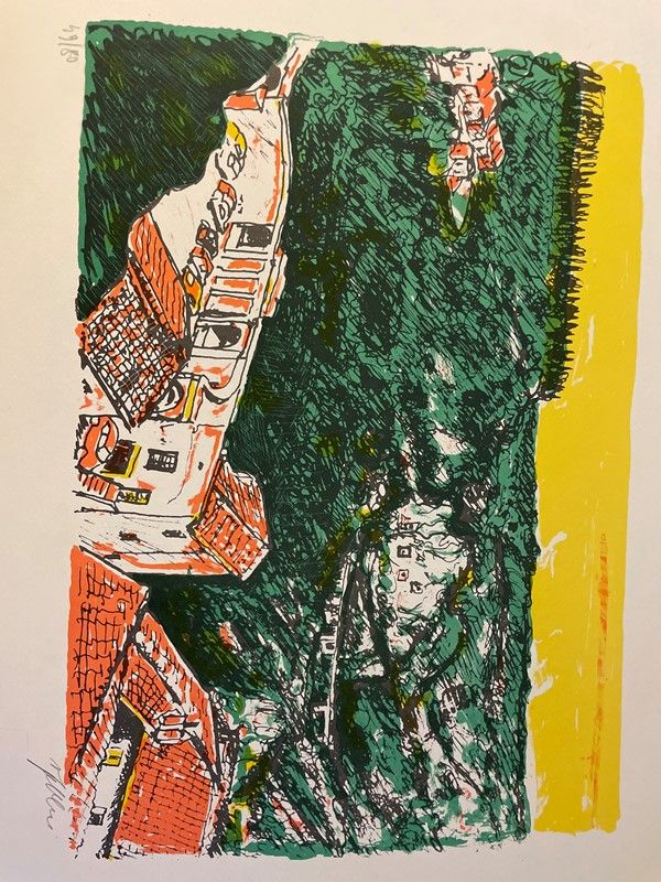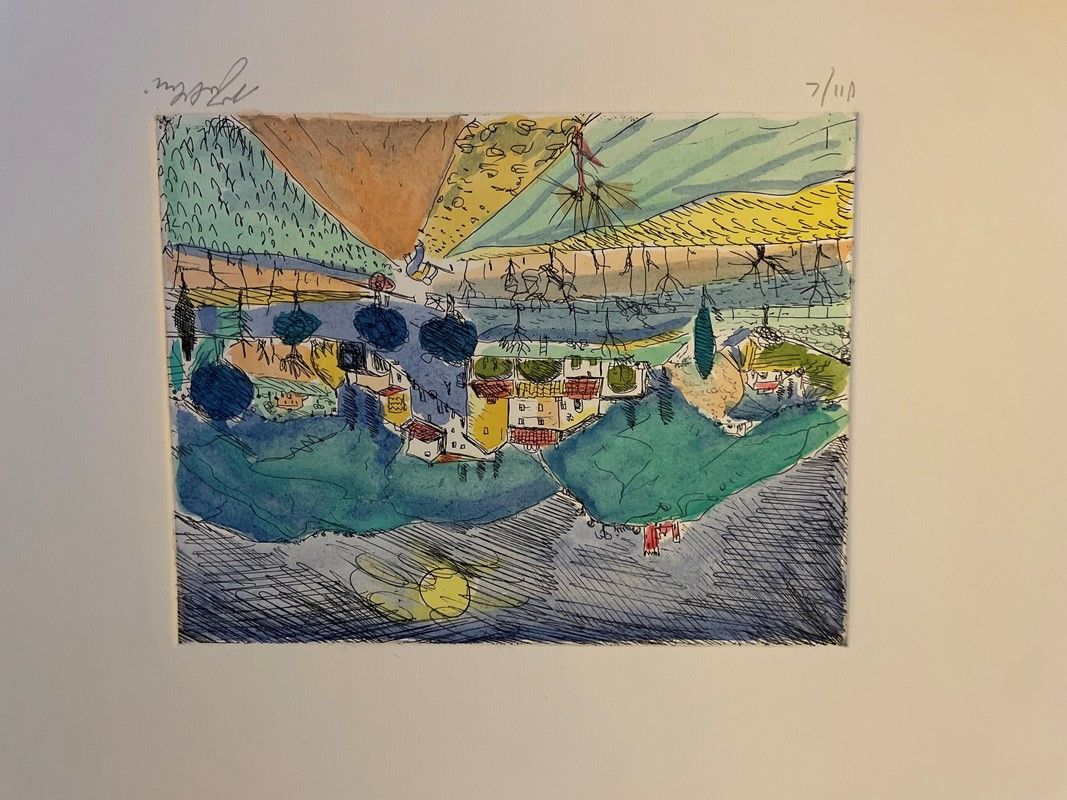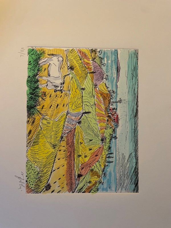 Lot consisting of 5 watercolor engravings depicting Monte Argentario by the painter Alfredo Fabbri; 11 original lithographs depicting Sorano by the painter Alfredo Fabbri and a photolithograph from the watercolor by Luciano Guarnieri depicting Palazzo Spini Feroni