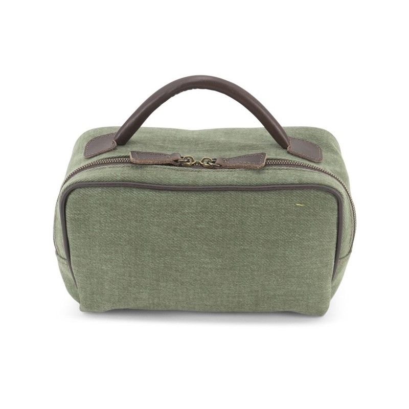 Beauty Large Eskimo colore verde prato in cotone, rivestimento interno impermeabile, dettagli in pelle, tasca interna, chiusura con cerniera, cm 23x13x10