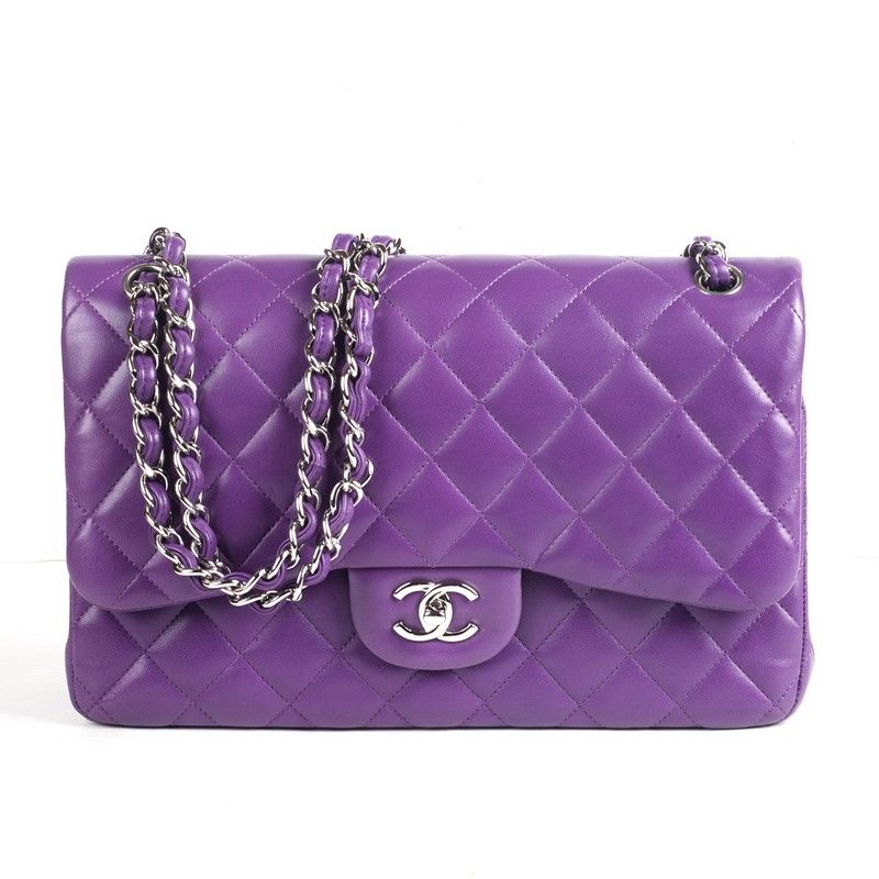 CHANEL TRACOLLA TIMELESS Elegante borsa Chanel Timeless in pelle trapuntata viola, inserti in metallo argento lucido, una tracolla a catena trasformabile in metallo con intrecci di pelle viola da portare a mano, in spalla o a tracolla.Con chiusura siglata in metallo argento lucido sulla patta e una tasca applicata sul retro della borsa.Fodera interna in pelle tono su tono, doppia patta a pressione e una doppia tasca applicata, uno scomparto per rossetto. Corredata di ID Card e dustbag originali. Dim. cm 30x18x10