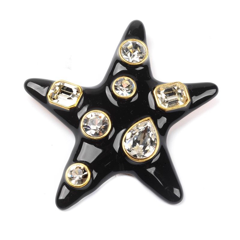 Particolarissima spilla in ottone smaltato nero, disegnata da Kenneth Lane, a forma di stella marina.