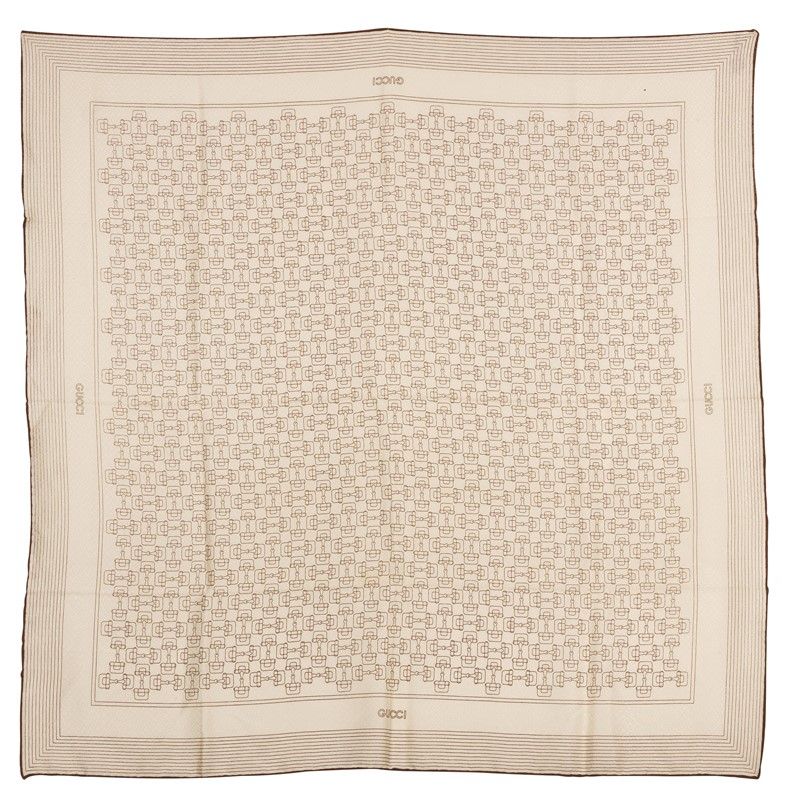 In seta 100% l’iconico morsetto ripetutto in modo simmetrico e continuo su tutto il quadrante, in marrone su base avorio.