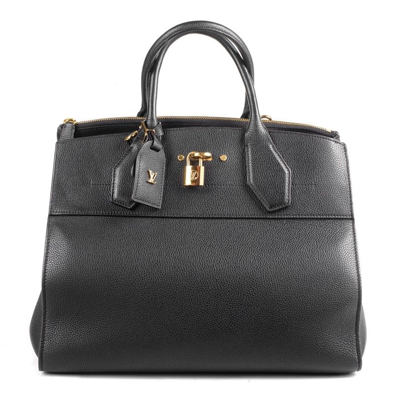 LOUIS VUITTON BORSA CITY STEAMER Bellissima borsa Louis Vuitton City Steamer in pelle martellata nera, inserti in metallo dorato, doppio manico in pelle martellata nera, Una chiusura con moschettone, Fodera interna in pelle nera, 3 scomparti di cui uno con zip. Corredata di targhetta e dustbag originali LOUIS VUITTON TOTE CITY STEAMER