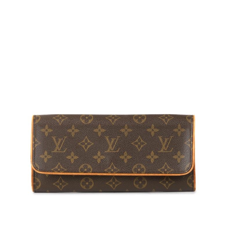 LOUIS VUITTON BORSA TWIN Incantevole borsa/pochette Louis Vuitton Twin modello piccolo in tela monogram cerata e pelle naturale, una tracolla removibile in pelle naturale da portare a mano in spalla o a tracolla. Chiusura con bottone a pressione sotto la patta e fodera interna in tessuto scamosciato beige. Dim. cm 25x11,5x3