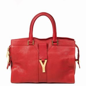 YVES SAINT LAURENT BORSA CHYC In pelle pelle di vitello nera con due manici e tracolla staccabile e logo frontale [..]
