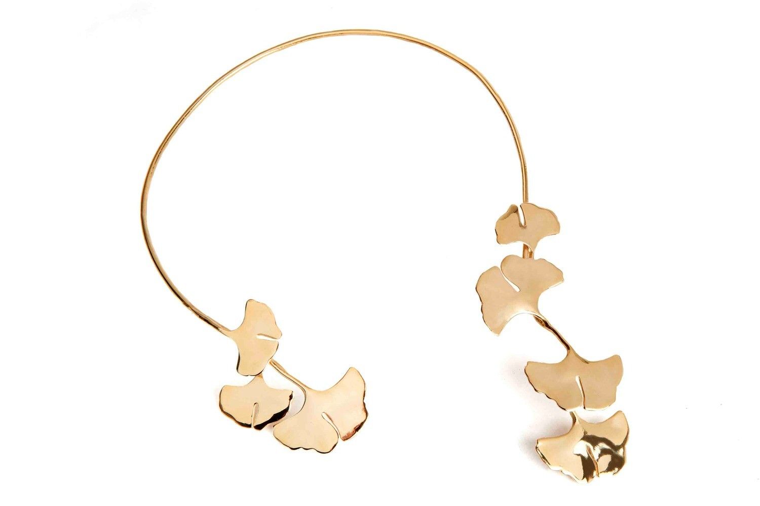 Collana ginkgo Carolina Ravarini in argento dorato. Il Ginkgo è simbolo di resilienza e capacità di affrontare positivamente gli ostacoli che ci si trova avanti.