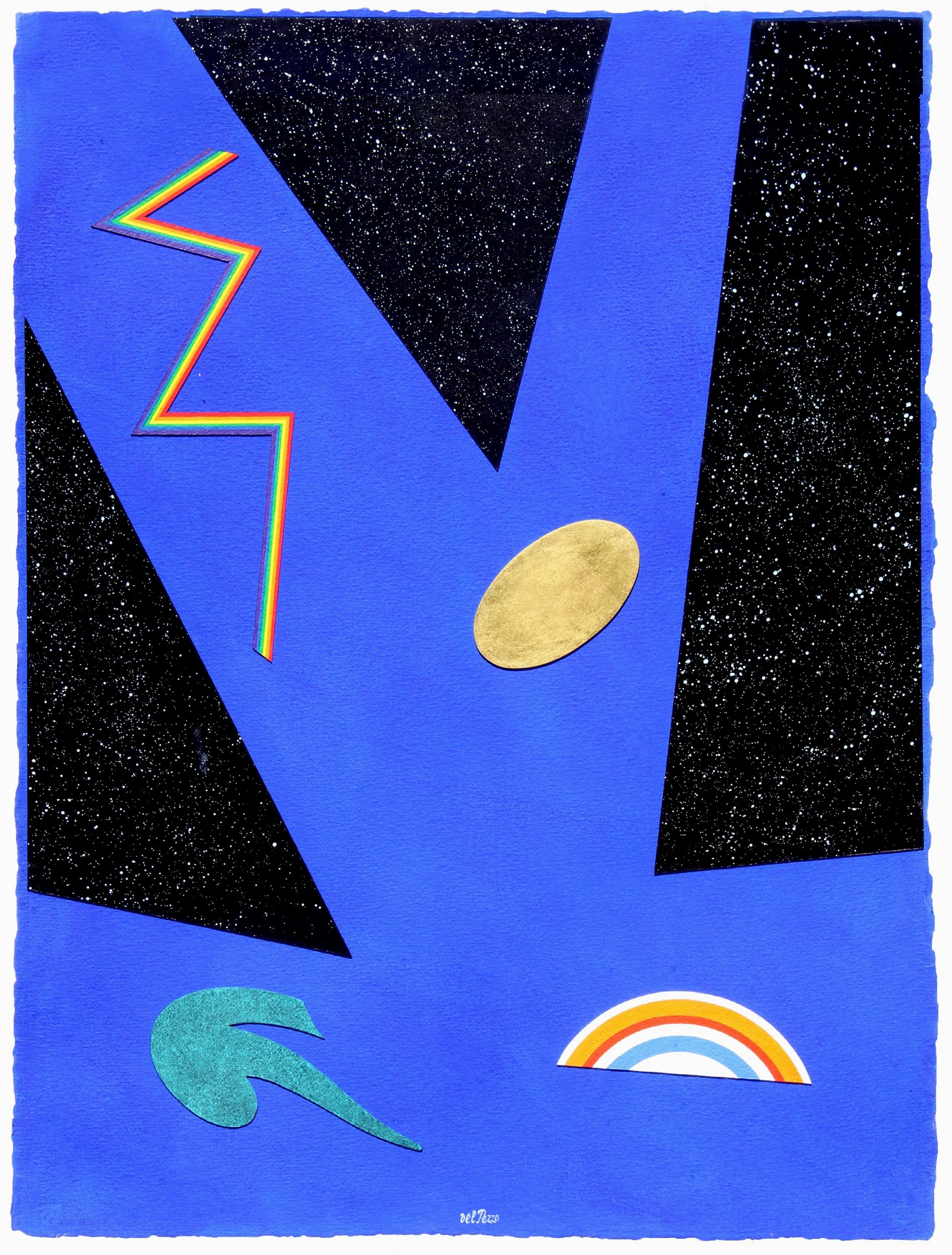 collage, acquerello, acrilico e foglia d'oro su cartoncino, cm 76x57,5