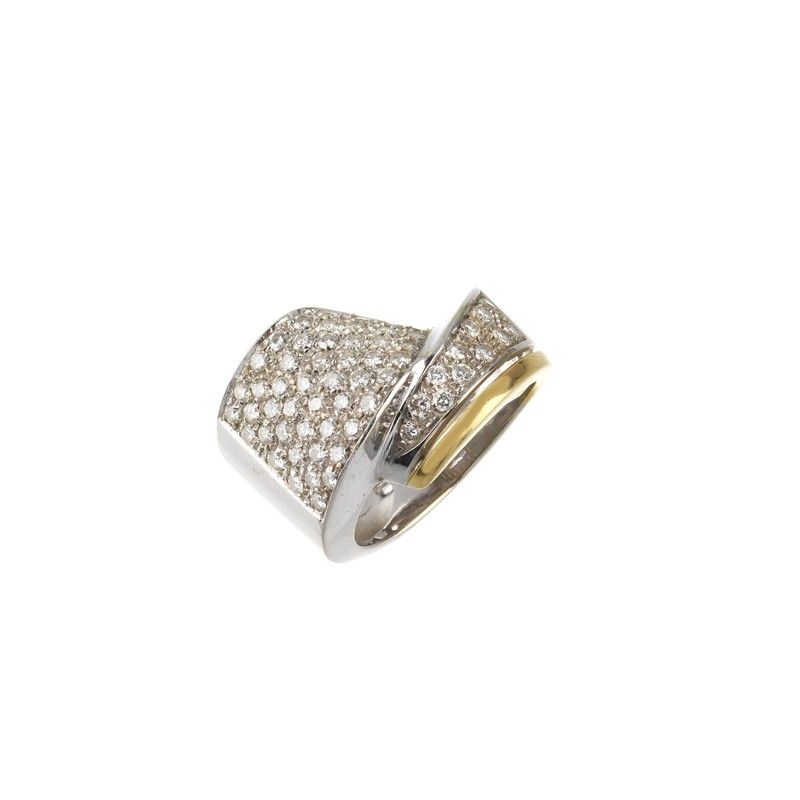 in oro bianco e giallo 18kt, impreziosito da pavé di diamanti taglio brillante per ct 1.50 circa, punzoni 750 e del fabbricante, mis. 17/57, gr. 12