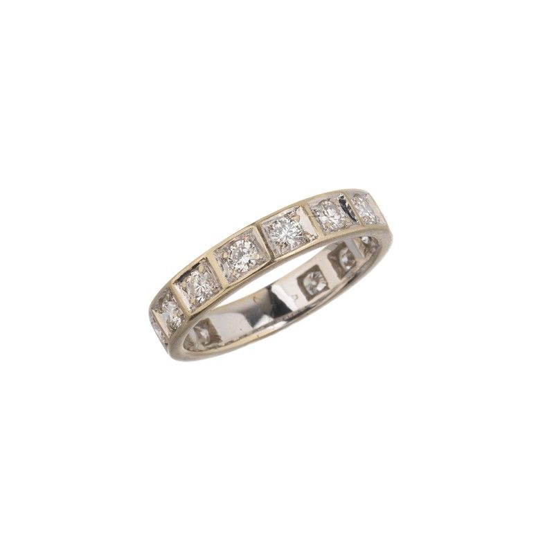 in oro bianco 18kt, realizzato a giro quasi completo di diamanti taglio brillante per ct 0.90 circa, mis. 11/51, gr. 3