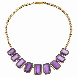 COLLANA CON PIETRE SINTETICHE in oro 9kt, realizzata a catena (difetti) con una fila di pietre sintetiche taglio [..]