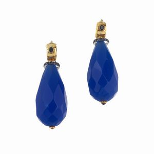 PAIO DI LUNGHI ORECCHINI in oro giallo e bianco 18kt, con due grandi gocce in calcedonio sfaccettato, impreziositi [..]