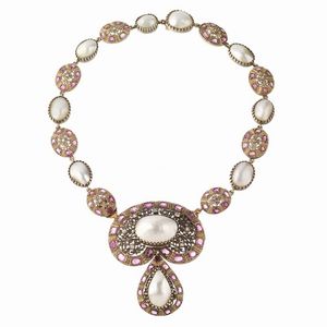 COLLANA PENDENTE CON PERLE MABE E DIAMANTI in oro a basso titolo e argento, impreziosita da perle mabé [..]