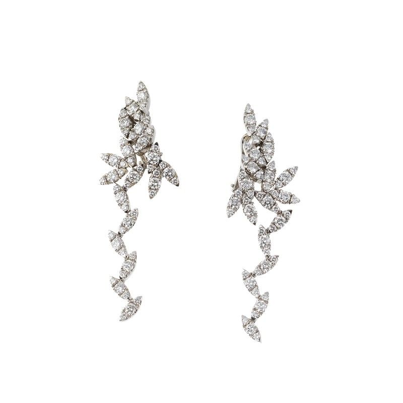 LONG DIAMOND DROP EARRINGS IN 18KT WHITE GOLD