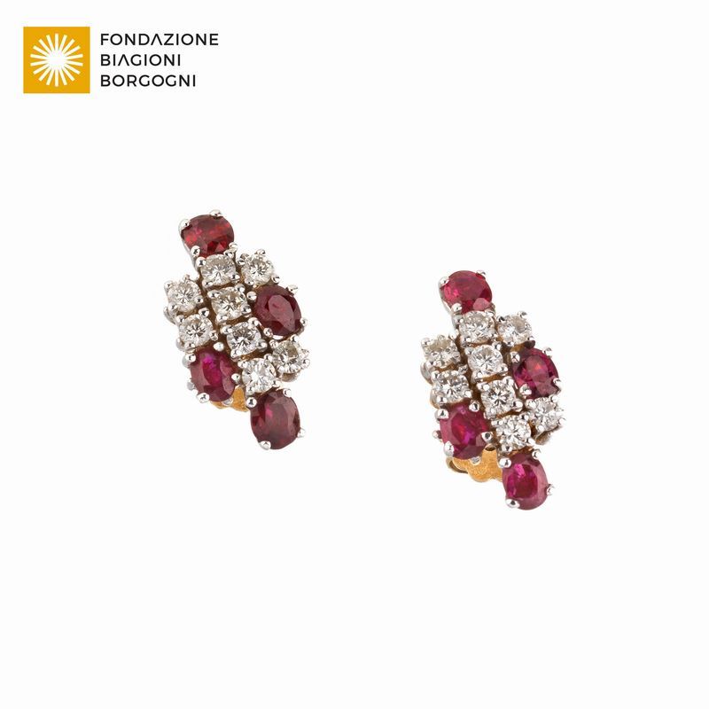 PAIO DI ORECCHINI CON RUBINI E DIAMANTI