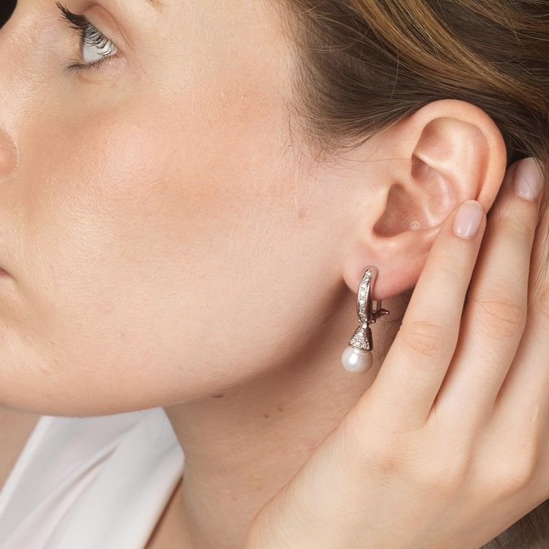 PEARL DROP EARRINGS IN 18KT WHITE GOLD