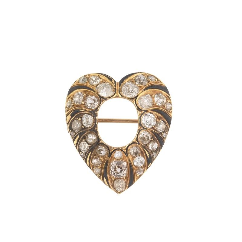 HEART-SHAPED DIAMOND BROOCH IN 18KT YELLOW GOLD
