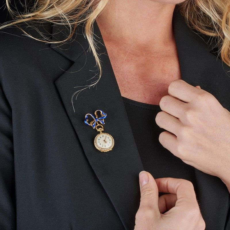 HENRY LEWIS & CO. OROLOGIO DA TASCA IN SMALTI CON SPILLA FIOCCO