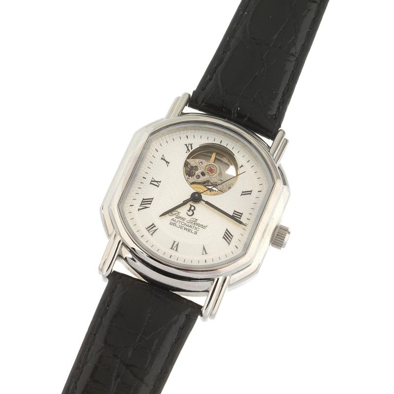PIERRE BONNET TOURBILLON cassa di forma in acciaio, fondello con movimento a vista, lunetta a scalini in acciaio, quadrante argentè guilloché con tourbillon, grafica nera, numeri romani, movimento a carica automatica, cinturino in pelle nera con fibbia in metallo non marcate, vetro minerale. Dim. mm 32x40. Corredato di scatola.