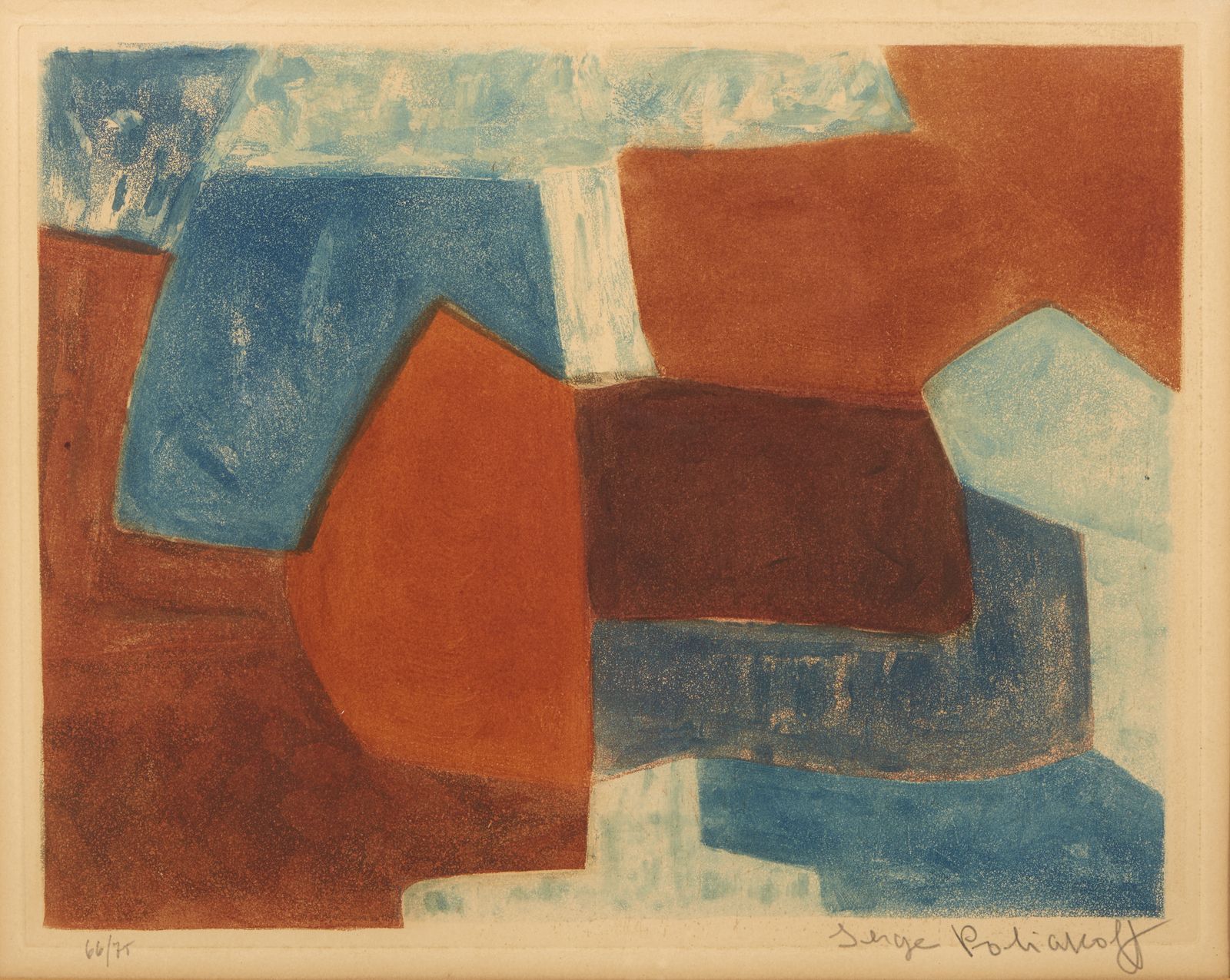 66/75. Tiratura e firma in basso a matita. Dimensioni lastra:35,5x28 cm. Edizione totale: 75 esemplari. Editore: XXème siècle, Paris. Stampatore: J. Davis, Paris. Pubblicazione: Serge Poliakoff : Graphik - Estampes - Prints , A. Poliakoff et G. Schneider, Ed. Galerie Française, Munich, 1998, n. XXXVI.