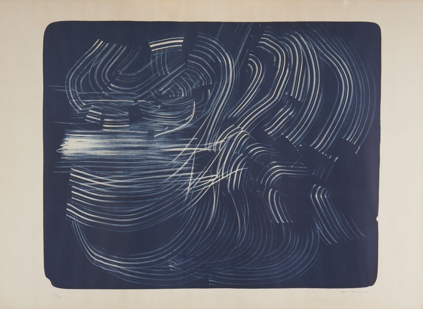 68/75. Tiratura e firma in basso a matita. Timbro a secco Erker Presse, St. Gallen. Edizione totale: 75 esemplari. Stampatore ed editore: Erker Presse, St. Gallen. Pubblicazione: Hans Hartung, Grafik aus der Erker-Presse 1973, Erker-Verlag St. Gallen, 1974, pp. 20, 24, n. L-10-1973. RMM. n. 411.