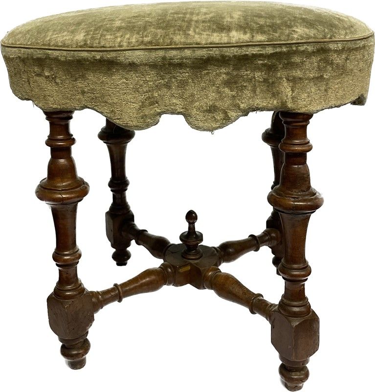 Panchetto con seduta in velluto e gambe tornite, h cm 48x51x37