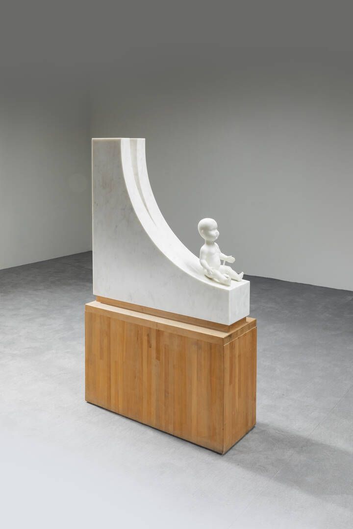 80x80x18 scultura in marmo 135x80x30 (con il basamento in legno) Opera firmata e datata al retro