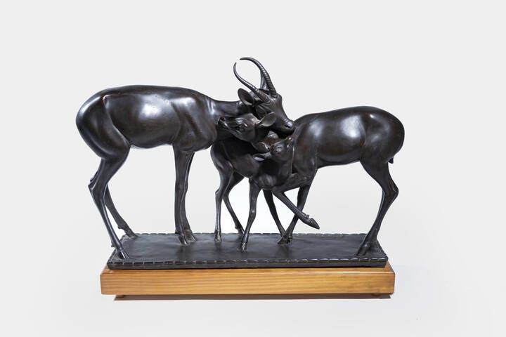 H. cm 39x60x16 scultura in bronzo su base in legno; 45x54x18 compresa base in legno Opera firmata sulla base
