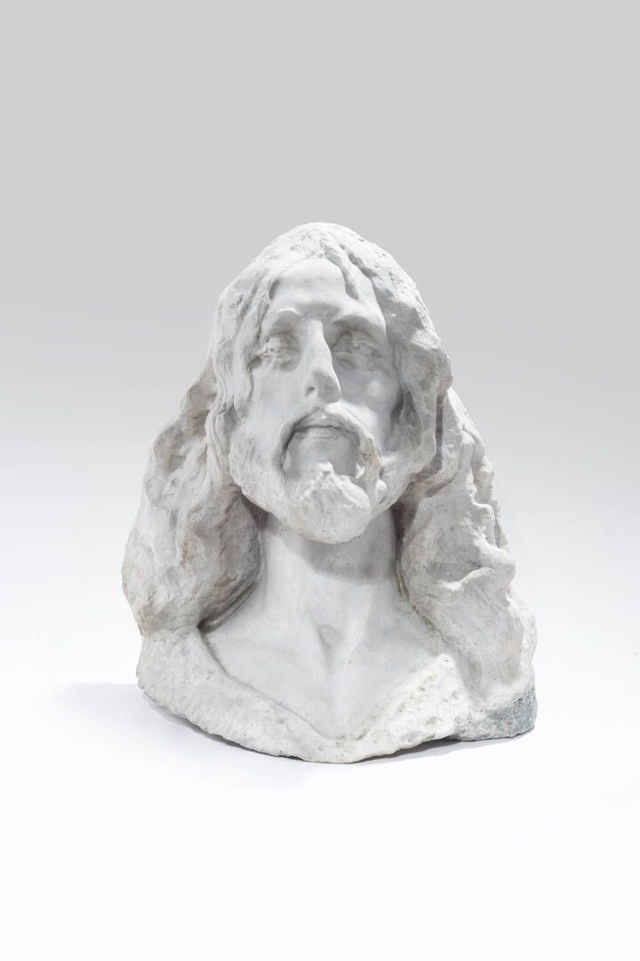 H. cm 45x37x27 scultura in marmo Versioni: - Statua in bronzo a figura intera sopra un basso podio in bronzo mosso in imitazione delle onde sulla sponda di un lago nel grande parco della Villa dei Conti Camerini (primi committenti dell'opera) a Piazzola sul Brenta (Padova) - Modello in gesso 220x65x60 - Calco della testa eseguito a tasselli 66x62x44 - Bozzetto in terracotta 40x32x39 firmato sulla base a destra coll. priv. Torino - Statua in bronzo donata dalla famiglia dell'artista al comune di Casale Monferrato nel 1934 e posta vicino alla tomba dello scultore nel cimitero della sua città natia - Statua in bronzo posta sulla tomba della famiglia Mazzola nel Cimitero di Torino (Campo Primitivo) nel 1934 - La testa del Cristo in marmo fu eseguita per un sig. Ferri col permesso del Conte di Camerini ed esposta a Buenos Aires nel 1910 - La testa del Cristo in bronzo fu incorporata da Bistolfi nella tomba che egli eseguì per il poeta Giovanni Cena a Montanaro nel 1927 - Testa del Cristo in marmo 37x52 coll. priv. Milano - Testa del Cristo in marmo coll. priv. Valenza - Tra le varianti della testa in marmo si ricorda quella della collezione di Riccardo Gualino ora di proprietà della Banca d'Italia - Due diverse varianti del busto in gesso sono riprodotte nella Gazzetta del Popolo della domenica del 26.4.1896 e da U. Fleres 1899 p.12 Esp.; - Venezia 1899 sala N int.3 (Corporazione dei Pittori e Scultori Italiani statua in gesso); Buenos Aires 1910 (testa in marmo); Carignano 1928 n. 33 (coia della statua in bronzo di VillaCamerini); Roma 1934 (testa del Cristo); Alessandria 1940 n. 2 (modello in gesso h. 257: propr. Lorenzo Bistolfi Massa 1981 n.8 (calco della testa da Casale Monferrato) Bibl.: - La Gazzetta del Popolo della Domenica 26.4.1896 G. Martinelli 1896 p. 459 M. Morasso 1.6.1899 p. 530; U. Fleres 1899 pp. 13-15; M. Pilo 1899 pp 277-278 The Studios Vol. XVII 1899 p. 206; G. Cena 16.3.1901 p. 75; L'Elettore 4.10.1901 pp. 159-160; C. Corradino 1903-1904 pp. 441 517-518; G. Cena 1.5.1905 pp. 6 8 13 L'Illustrazione Italiana 9.7.1905 p. 31; G. Bevione 1905 pp. 456 462; Avanti della Domenica n. 24 1905 pp. 3 4 7 12; L'Artista Moderno» n. 18-19 1905 p. 290 E Comel- lo 14.6.1908: La Nación 28.8.1910; G. Dominione 1.9.1910 p. 8; Bestetti e Tuminelli (1911) tav. 15; F. Rizzi 4.5.1913; G. Grondona 30.3.1915 p. 389; Prima Pubblica zione Savoriaroliense 1916 p. 49; M. Bernardini) 11.12.1927; E. Marchetti settembre-ottobre 1933 p. 7; V. Falletti otto- bre 1933 p. 166; «Alexandria» ottobre 1933 p. 166; «Gaz zetta del Casalmonferrato 13.1.1934 p. 3; A. Biancotti febbraio-marzo 1938 p. 112 E. Grasso 1940 pp. 109-110 S. Berresford 1981 p. 187; 1. Grignolio 1983 p. 334.