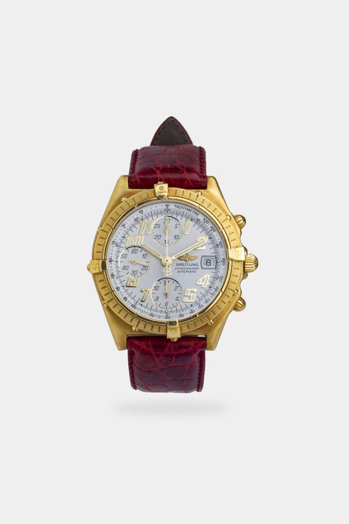 Diam. 39 mm Cassa in oro con fondello a vite e lunetta girevole monodirezionale. Quadrante bianco con numeri arabi luminescenti applicati contatore dei secondi continui al 9 dei 30 minuti al 12 e delle 12 ore al 6. Presente il datario al 3. Movimento a carica automatica cal.7750 Presente box da viaggio e certificato di service.