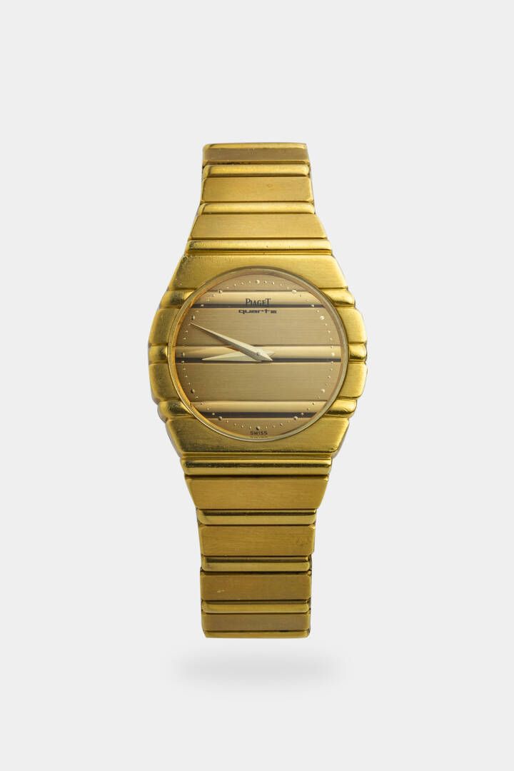 Diam. 26 mm Cassa in oro con tipica forma. Quadrante oro che replica il motivo decorativo della cassa. Bracciale in oro con chiusura a scomparsa. Movimento al quarzo. Completo di scatola controscatola garanzia e porta garanzia in pelle.