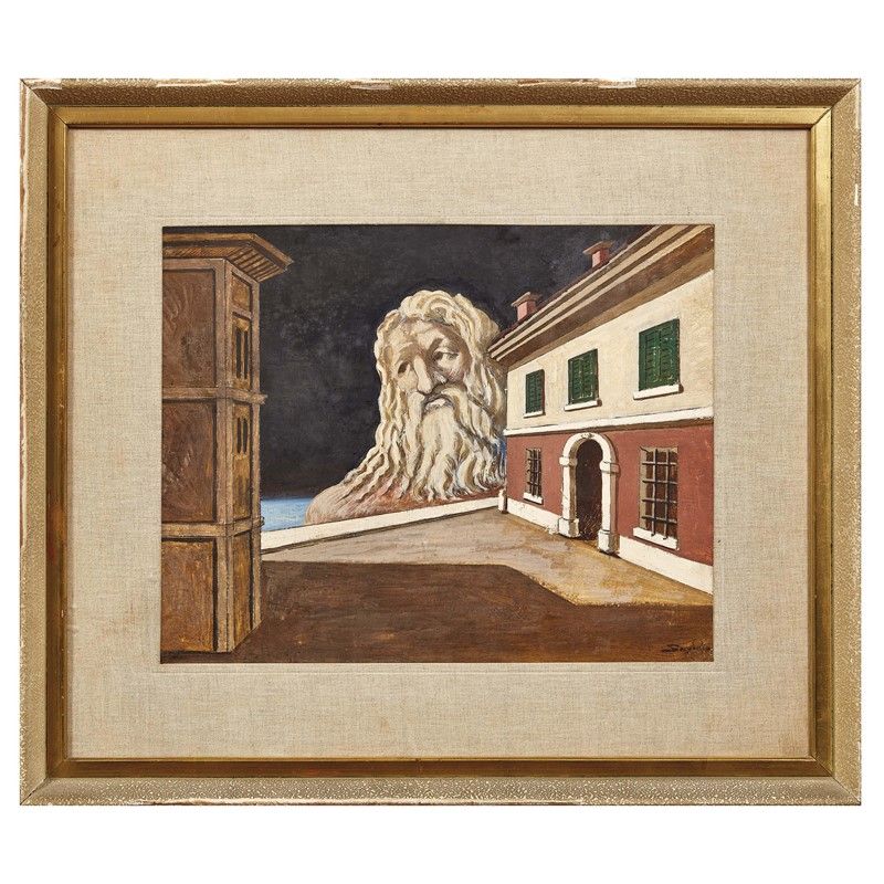 L’opera Nettuno, realizzata nel 1939 e esposta alla Galleria del Milione nel 1940 durante una sua personale, è un esempio emblematico di come Savinio abbia saputo tradurre la sua erudizione classica in un linguaggio artistico contemporaneo. In questa composizione, l'artista ha ritratto il dio del mare, Nettuno, emergere dal profondo sfondo blu che contrasta con le case in primo piano. La scelta del dio del mare non è casuale: richiama la sua infanzia trascorsa nelle terre elleniche e il costante richiamo del mare nella mitologia greca.