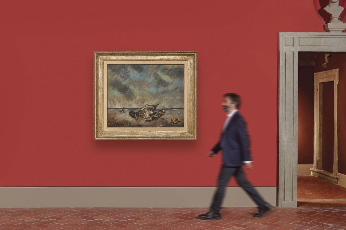 Ma la vera chiave di lettura di questa opera è la figura umana sullo sfondo. De Pisis inserisce questa figura in modo sottile, quasi eterea, come se fosse una presenza appena percettibile. La figura umana potrebbe rappresentare il nostro sguardo, lo spettatore che contempla la scena con stupore e ammirazione. Oppure potrebbe essere un elemento simbolico, un richiamo alla fragilità umana di fronte alla grandezza della natura. La tavolozza di De Pisis è ricca di tonalità calde e avvolgenti, che conferiscono all'opera un'atmosfera suggestiva. I dettagli minuziosi dell'anatra e la resa accurata dell'ambiente marino testimoniano la maestria tecnica dell'artista.