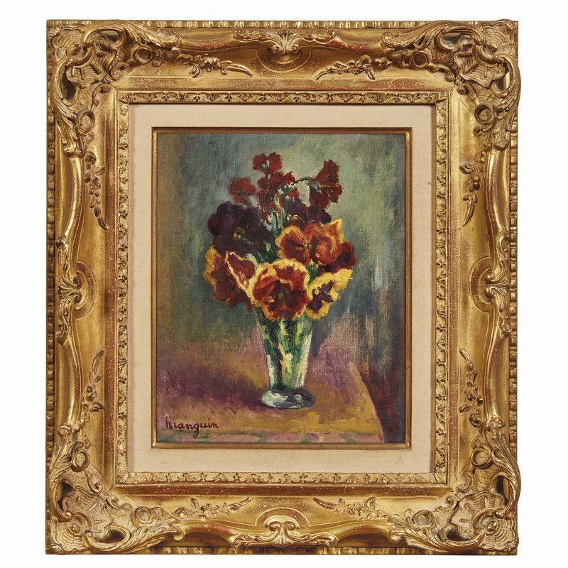 HENRI MANGUIN (Parigi 1874 - Saint-Tropez 1949) Vaso di fiori olio su cartone cm 27,2x21,2 firmato in basso a sinistra al retro firmato al retro timbro “46”