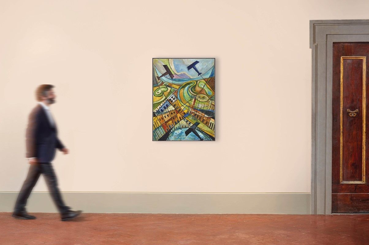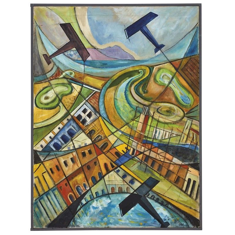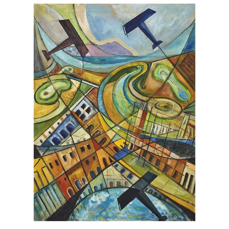 PIERLUIGI BOSSI detto SIBO' (Milano 1907 - 2000) Nascita di Sabaudia 1938 olio e tecnica mista su tela cm 122x92 firmato in basso a destra al retro firmato, titolato e datato al retro cartiglio Arte Centro, Milano con n. 9954